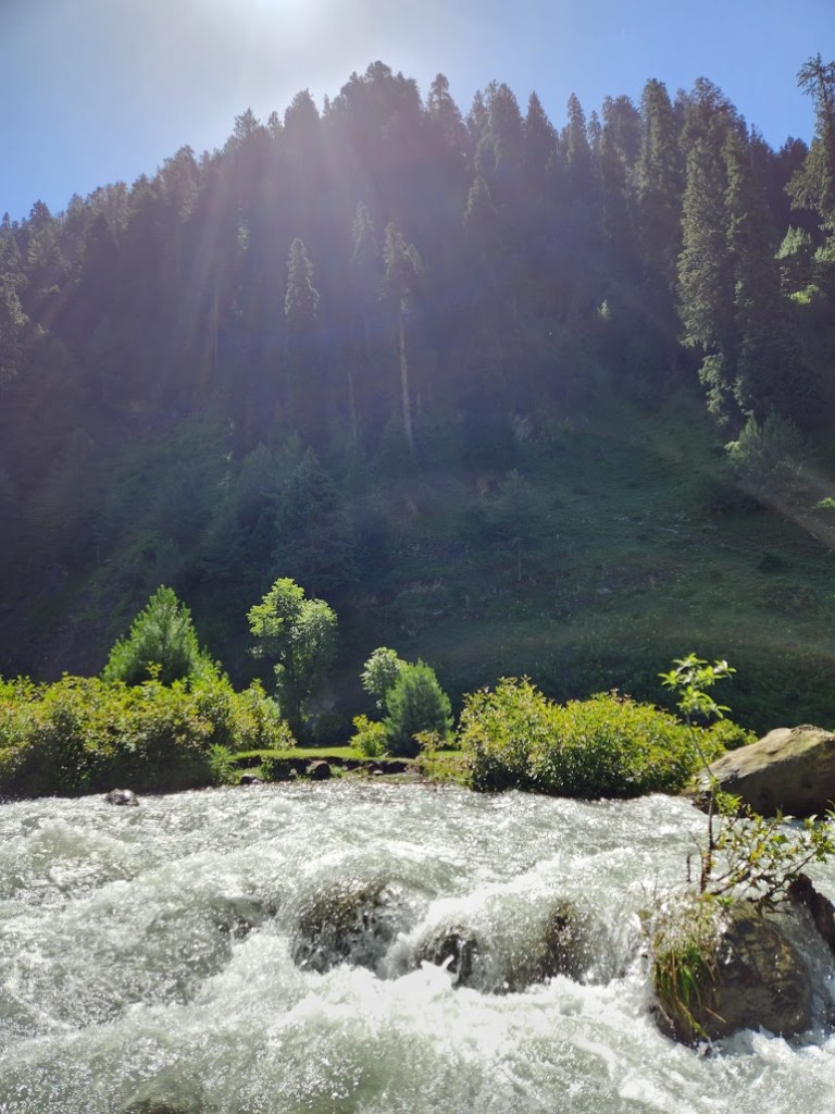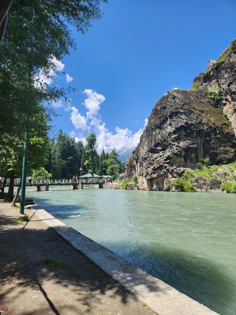 - My first destination was Pahalgam and I was awestruck. The landscape and the scenery as we got further away from Srinagar and closer to Pahalgam was simply superb, to say the least! We drove alongside the Lidder river. The water was so clean and pristine, and surrounded by green trees and mountain views; a perfect spot for rafting and ofcourse for pictures!
