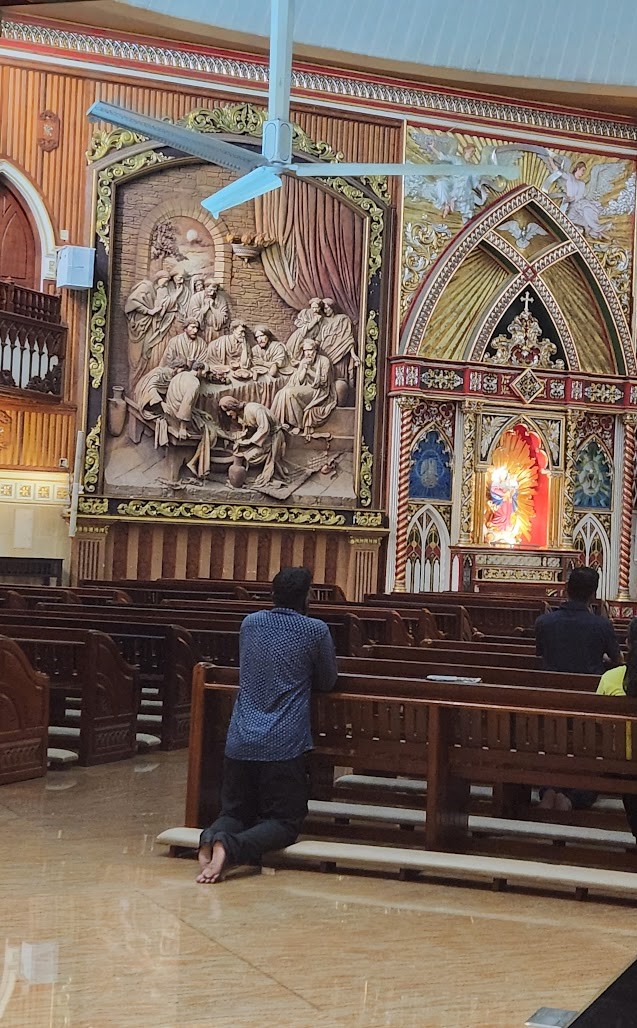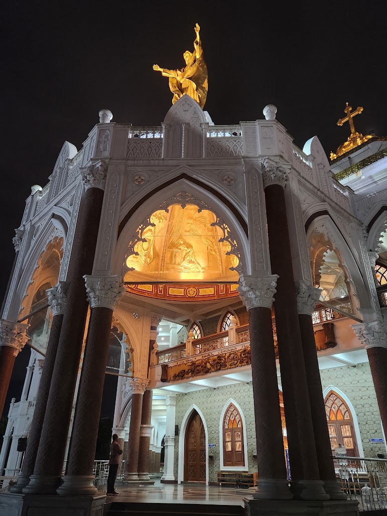 I had researched a little and found a small but pretty church to see, named Infant Jesus. And thanks to our Uber driver who additionally took us to the George Forane Church, also known as Edapally Church. It was simply stunning. I’ve been to several European countries and seen many churches, but this one was nothing short of sheer magnificence. I often wonder why no one talks about it; I didn’t find a mention of it anywhere when I was researching for my trip. It truly was a hidden gem. I would urge you to take out a few minutes while on your way to the airport to visit this beauty.