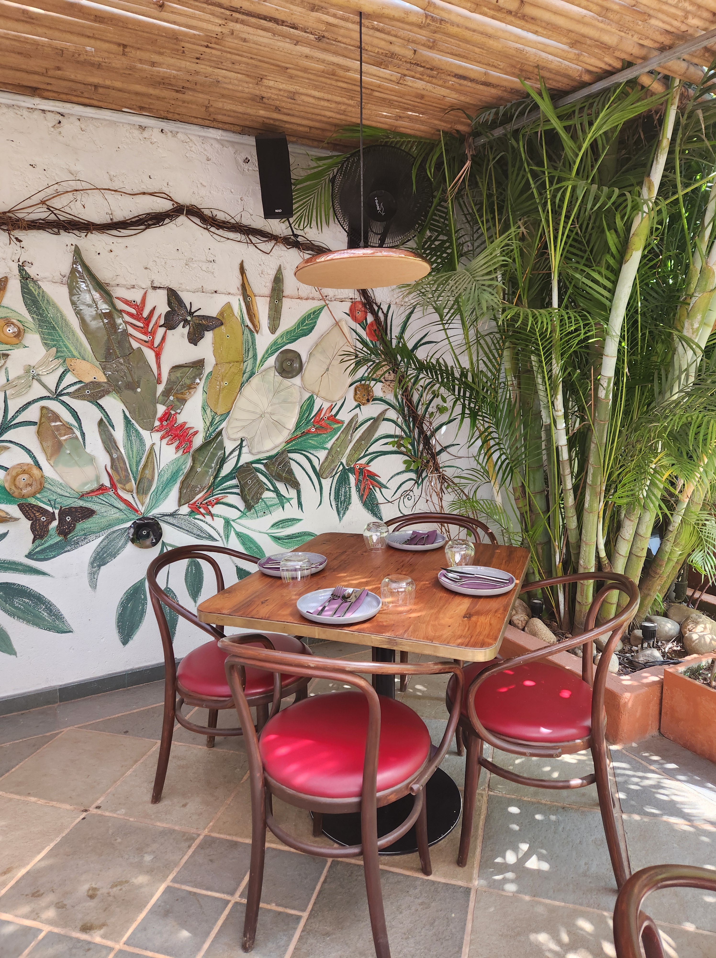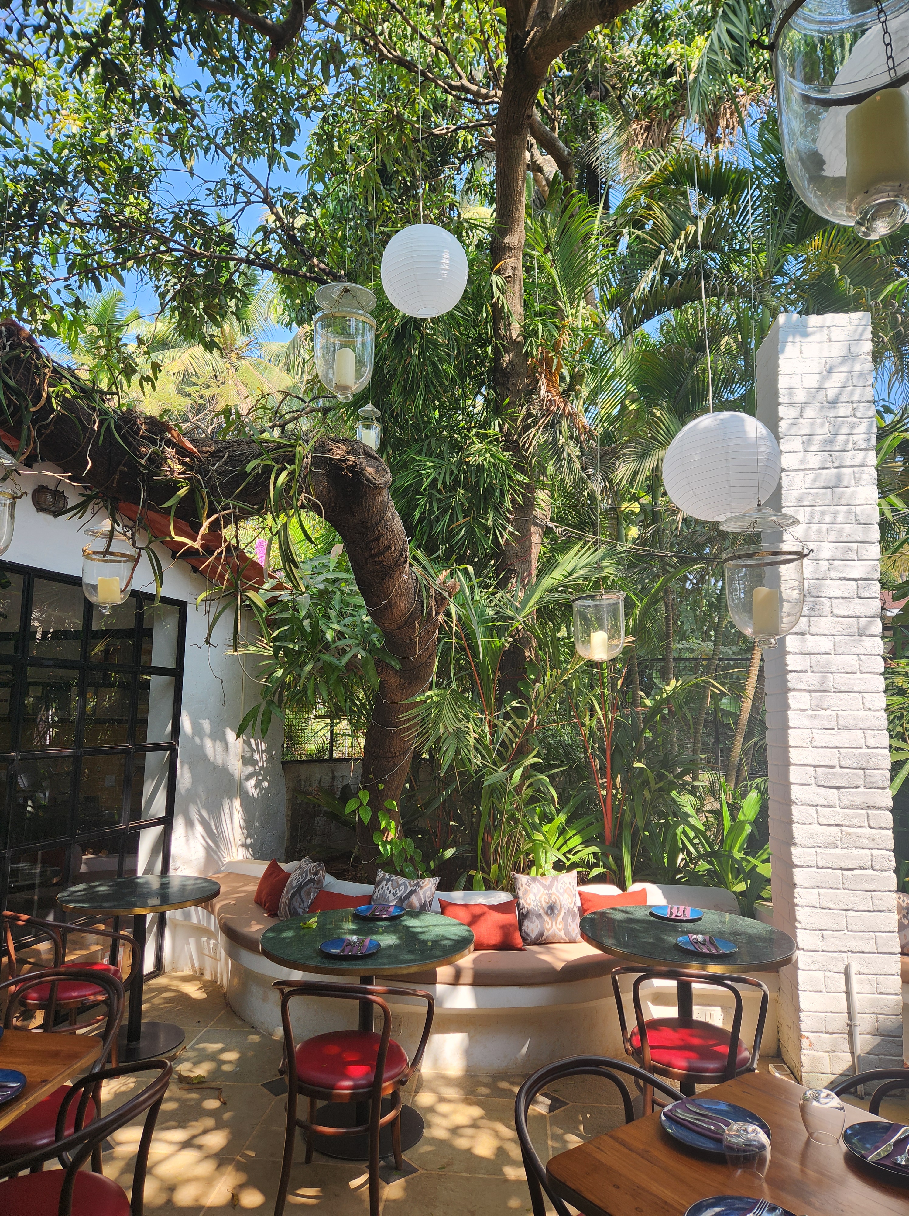 • An all-time favorite of mine is Mojigao in Assagao. They have a fairly exhaustive menu. Typically, we’d start with breakfast and keep sitting and soaking-in the vibe till lunch, or just enjoy a long lazy brunch – start with coffee and end with cocktails! The place has a great vibe, it’s green, and usually has art exhibitions or live music on. It also has a nature walk, yoga sessions and also rooms to stay