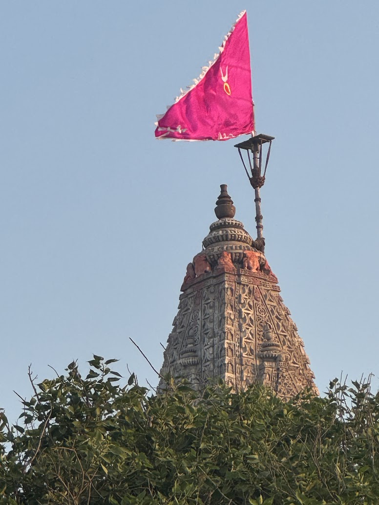 The temple’s shikhar bears a flag adorned with symbols of the sun and moon, signifying the eternal presence of Lord Krishna. This flag is changed five times a day, a sacred ritual often sponsored by devotees and carried out with immense devotion and precision. I was fortunate to witness this ceremony — moments like these, the crowds, the collective faith, they transport me to another realm altogether.