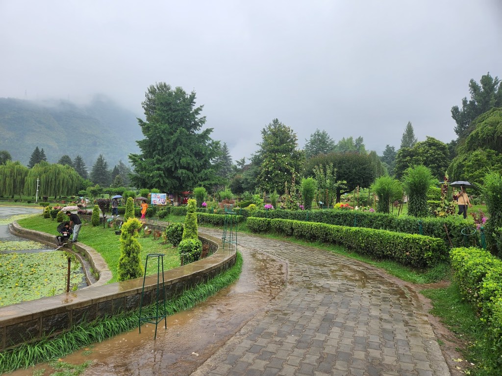 We then had to move on, visit the Nishat Bagh and the Shalimar Bagh. The former was a great garden – had lovely Dal Lake view on one side, and the Mountain view on the other, and in between was the well maintained green garden, bed of flowers, little streams of water, and the cover of clouds. Ofcourse this is a touristy place and the weather being so pleasant, we noticed alot of locals enjoying a day out. The Shalimar Bagh wasn’t great to be honest – seemed like it was going through some renovation and the upkeep wasn’t too good. If you are short on time and would like to prioritize, in my mind, the top 3 gardens would be Chashme Shahi, Nishat Bagh, and Pari Mahal.