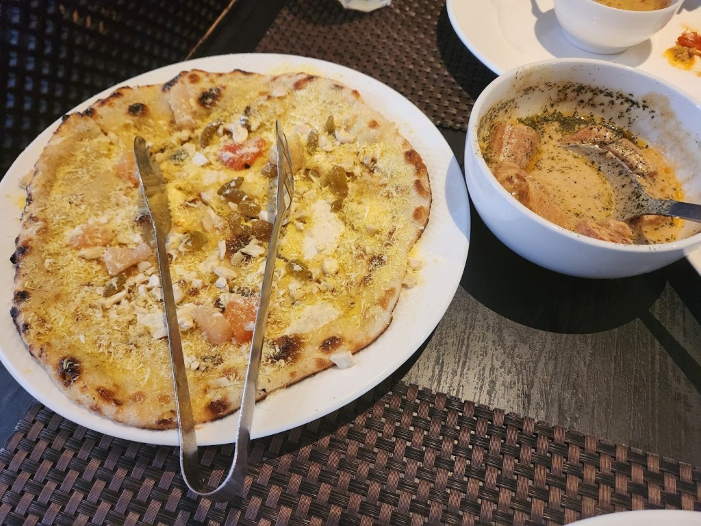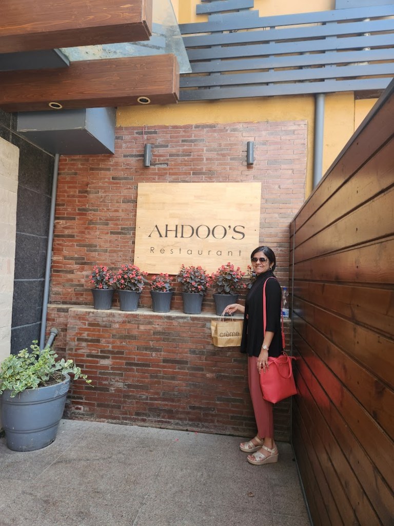 Next, it was time for some shopping! So, we headed to the Kashmir Government Arts Emporium. This was a shopping paradise – suits, shawls, paper mache decor items, carpets and rugs, and much more! We also visited and walked around the traditional bazaar of Lal Chowk as well as the Polo View Market (a new/latest addition to Srinagar, thanks to the G20 summit in the city). The former was crowded and very busy, better suited to the locals and I believe the latter would have had a nice charm in the evening when lights came on. For lunch, we went to Hotel Ahdoos, and loved it. Even on a weekday afternoon, the restaurant was fairly occupied with corporate folks, kitty party groups, some families and tourists like us. Great food and great service. We thoroughly enjoyed eating Kashmiri Naans and Nadru Yakhni. We also visited the hotel’s cafe and bakery called Creme and got chocolate walnut cookies packed, to take back home.