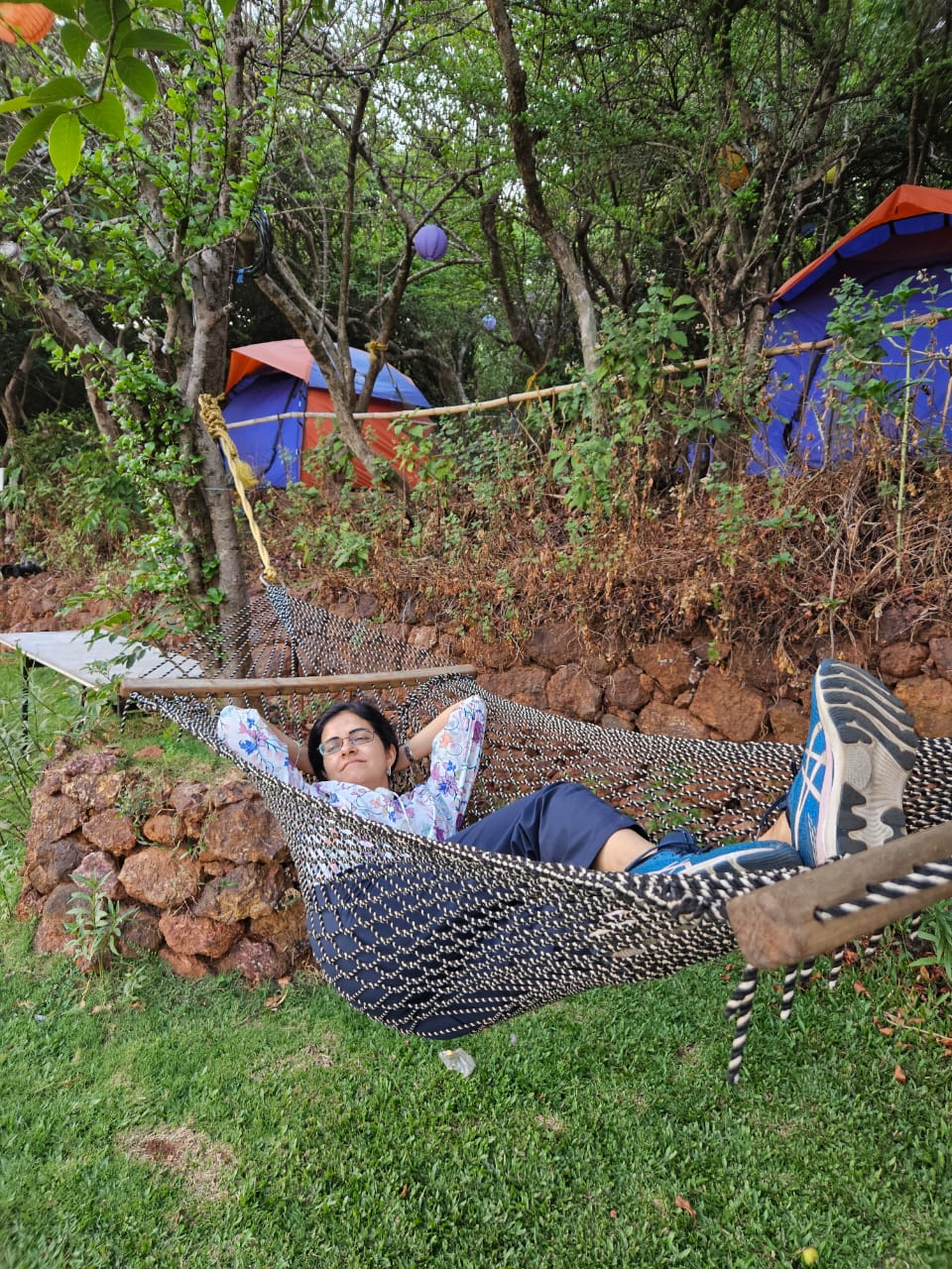 - Advait Valley: This is a short walk from Ramsukh. We sat (and lay) here for hours – on the grass and in the hammock. Infact, they also have a few tents put up, so for the adventurous folks, staying there for the night and waking up to a great sunrise view is certainly an option. The point offers stunning views of the Krishna river and you can spot the rock structure which looks like an elephant’s head, and hence thereby got its name